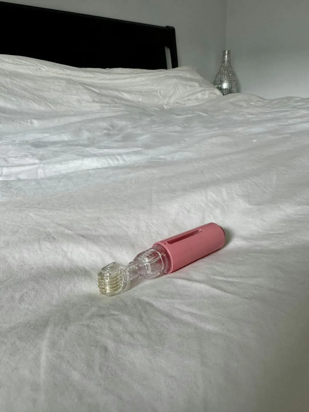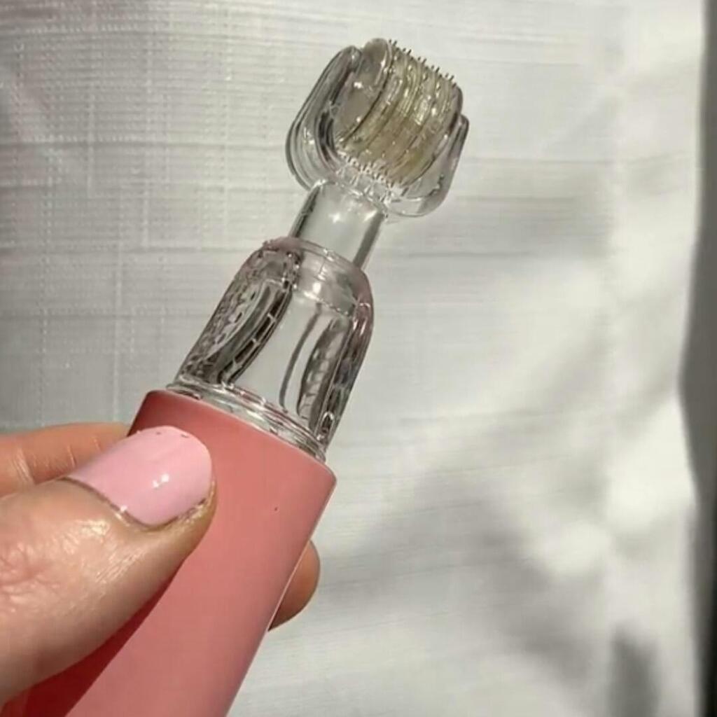With gentle pressure, glide the roller across your lips in a rhythmic pattern: four times vertically, four times horizontally, and finished with a diagonal criss-cross. Let the micro needles do the work, awakening deep collagen production for a naturally plump, sculpted finish.
